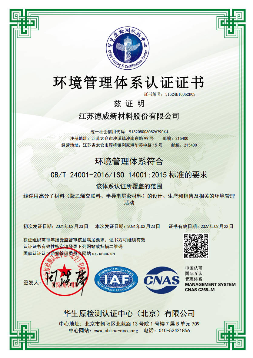 江蘇德威 ISO 14001 證書